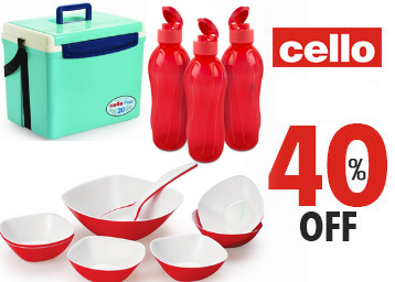 Flat 40% off on Cello Products + Extra 30% Cashback via Paytm wallet